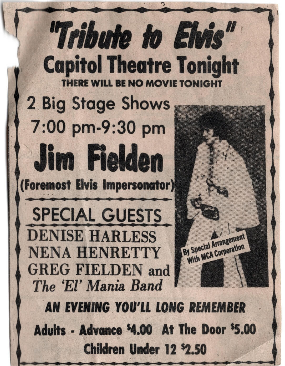 Marketed as “An Evening You’ll Long Remember,” the event lived up to its promise. With affordable admission and a focus on family-friendly entertainment, the Capitol Theatre welcomed fans of all ages for a night that honored the King’s enduring influence while showcasing Jim Fielden’s distinctive talent and crowd connection.