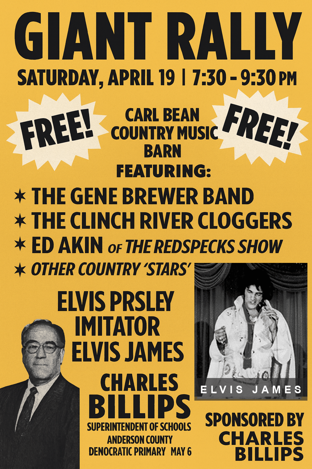 This community rally brought together local talent, families, and supporters for an evening of entertainment at the Carl Bean Country Music Barn. The event, sponsored by Charles Billips during his campaign for Superintendent of Schools in Anderson County, offered a free night of music and performances designed to energize and unite the local community.