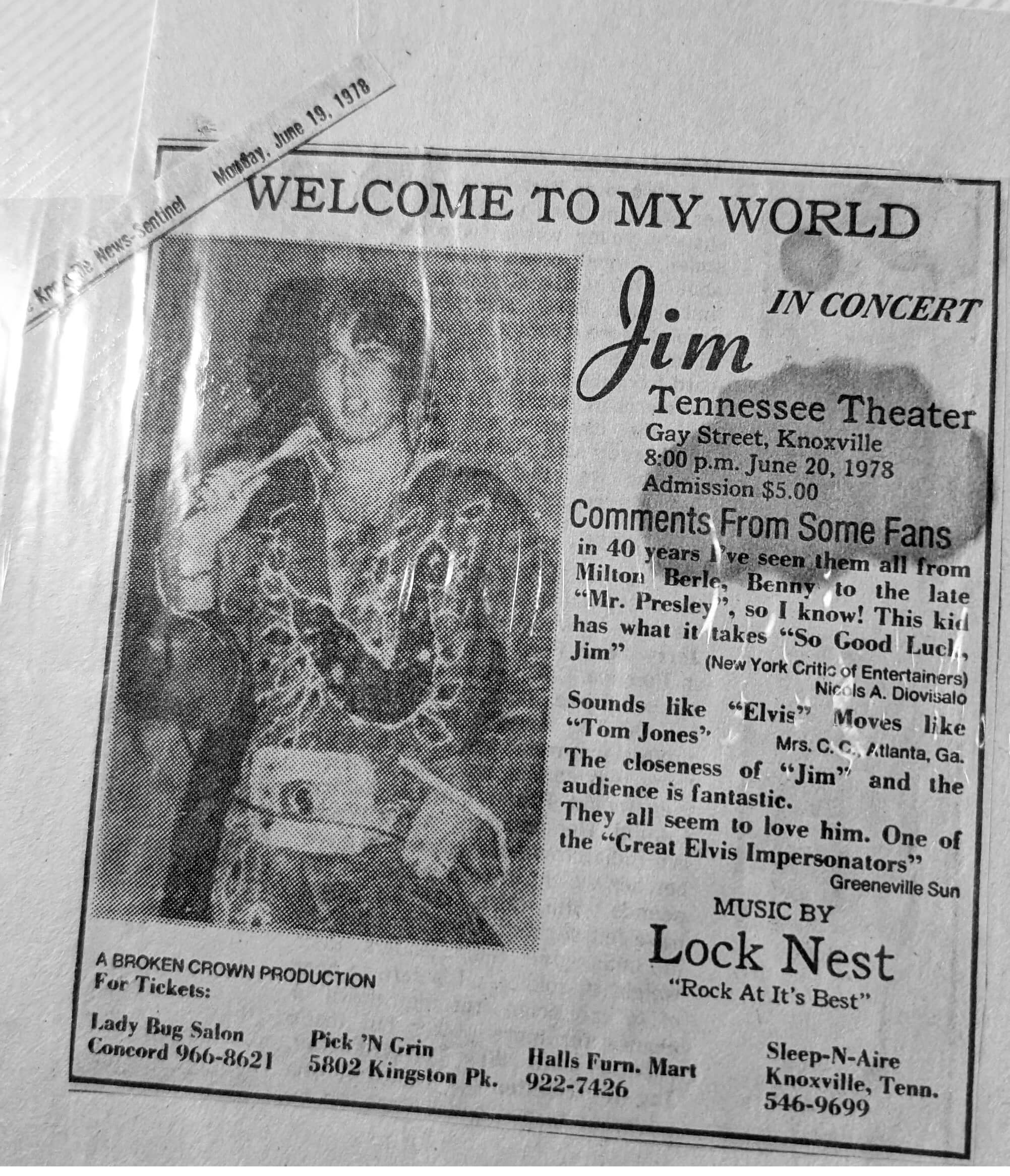 In June of 1978, Elvis James stepped onto the historic stage of the Tennessee Theater in Knoxville for a concert titled Welcome to My World. With an admission price of five dollars and a packed house on Gay Street, the event brought fans together for one of his earliest and most memorable showcases.